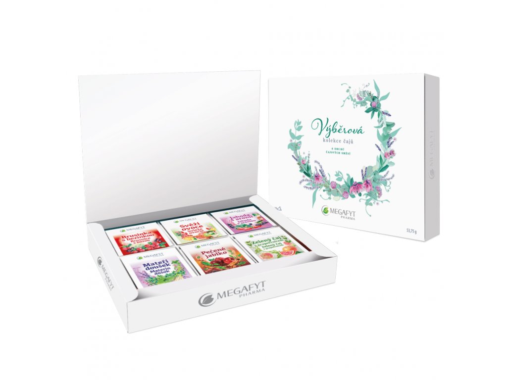 Čaje v elegantní papírové krabici jsou skvělým dárkem pro všechny milovníky čajů. Kolekce obsahuje 6 druhů čajových směsí s různými příchutěmi v jednom balení: