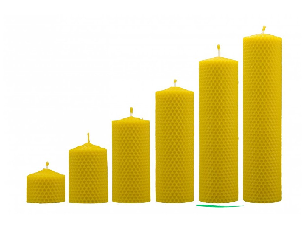 Motané svíčky ze včelího vosku jsou ručně vyráběné, každý kus je originál. Vosková mezistěna se nejprve seřízne na požadovanou velikost, ustříhne se knot v požadované délce a svíčka se umotá. Teplota v místnosti musí být přesná, jinak je vosk buď hodně měkký a deformuje se, nebo je tuhý a praská. Je to opravdu mistrovská práce.