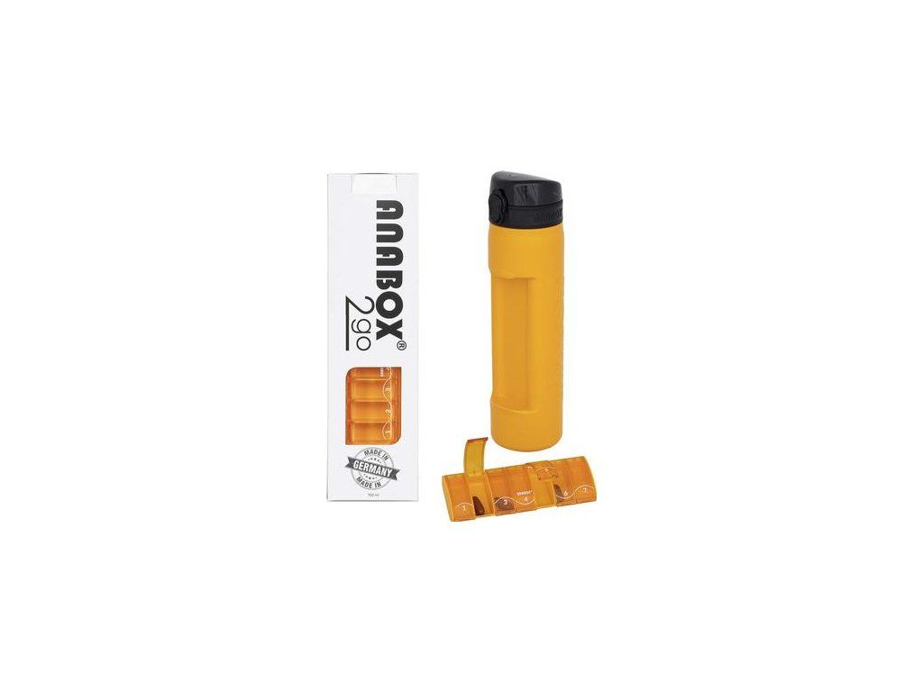 ANABOX 2GO Láhev 700 ml s dávkovačem léků, melounově žlutá barva