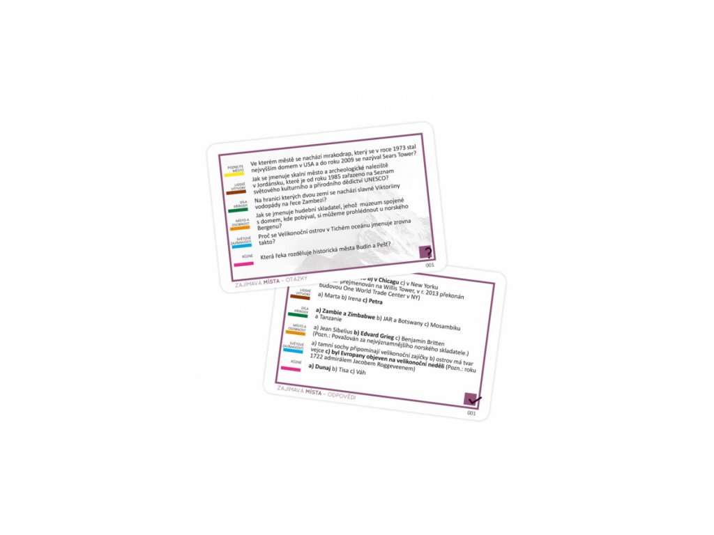 V každém balíčku Kvízů do kapsy najdete 50 karet s otázkami rozdělenými do šesti tematických okruhů. Ke každé z 300 otázek máte k dispozici na výběr ze tří možných odpovědí.