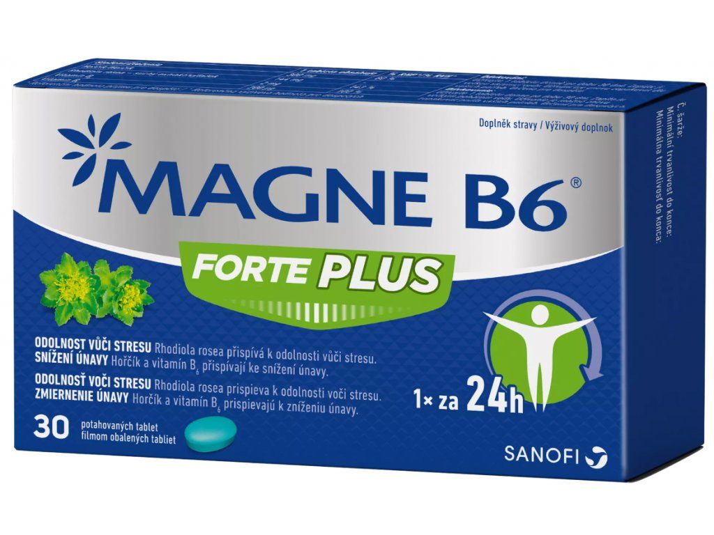 Magne B6 forte plus je doplněk stravy obsahující kombinaci 4 aktivních látek: extrakt z Rhodiola rosea (rozchodnice růžové), hořčík mořského původu, vitamíny B6 a B9.