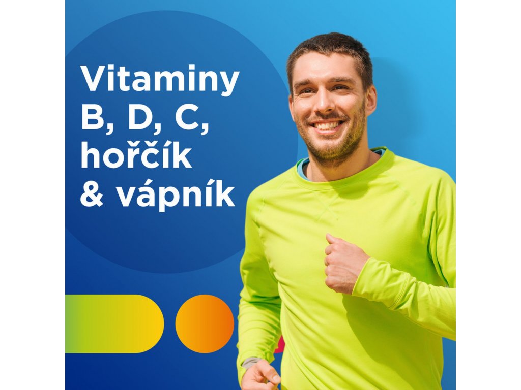 Produkt obsahuje hydrogenfosforečnan vápenatý, uhličitan vápenatý, oxid hořečnatý, plnidla: mikrokrystalickou celulosu, hydroxypropylmethylcelulosu, polydextrosu, vitamín C(L-askorbovou kyselinu), protispékavé látky: zesíťovanou sodnou sůl karboxymethylcelulosy, oxid křemičitý, talek, fumaran železnatý, nikotinamid, vitamín E (DL-alfa-tokoferylacetát), D-pantothenan vápenatý, oxid zinečnatý, síran manganatý, emulgátor: hořečnaté soli mastných kyselin, vitamín B6 (pyridoxin-hydrochlorid), vitamín B2 (riboflavin), želatinu, Vitamín B1 (thiamin-mononitrát), betakaroten, rostlinný olej ( kokosový a palmový olej), síran měďnatý, vitamín A (retinyl-acetát), kyselinu listovou (pteroylmonoglutamovou), chlorid chromitý, molybdenan sodný, jodid draselný, selenan sodný, biotin (D-biotin),antioxidant: butylhydroxytoluen, vitamin K (fytomenadion), vitamín D (cholekalciferol), vitamín B12 (cyanokobalamin), oxid titaničitý, indigotin.