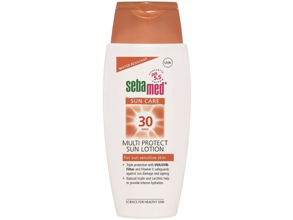 - Sebamed vysoce efektivní opalovací mléko s vysokým faktorem SPF 30.