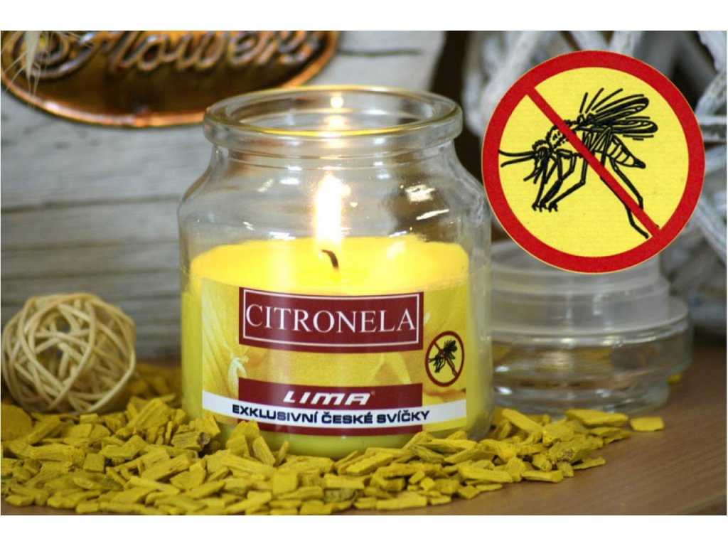Lima exkluzivní české svíčky s vůní citronely odpuzují bodavý hmyz včetně komárů. Tradiční kompotovky se skleněným víčkem, které vypadají stejně sympaticky jako domácí marmeláda od babičky, se pyšní extrémně dlouhou dobou hoření. Svíčky vydrží hořet mnoho desítek hodin, přičemž intenzita aroma neklesá. Sklenička je 15 cm vysoká.